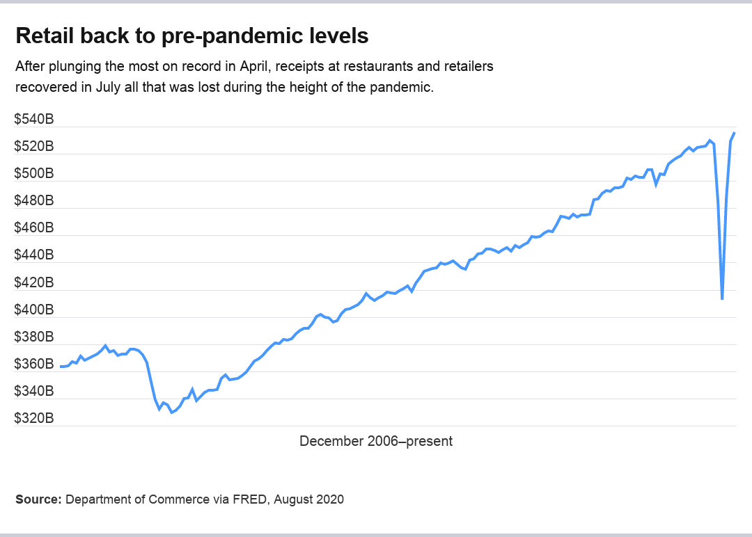 The W recession is also just as esoteric as it is rare. Some indicators lend themselves to rebounding quicker than others, especially in the case of the coronavirus crisis. Receipts at restaurants and stores, for example, have already rebounded past pre-pandemic levels, up about 2.7 percent from a year ago. Yet consumption overall is still about 3.8 percent below last year’s levels, and more than 13.5 million Americans are out of work.