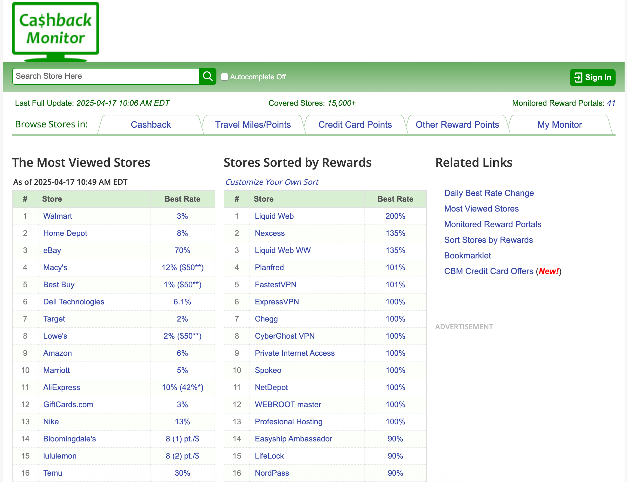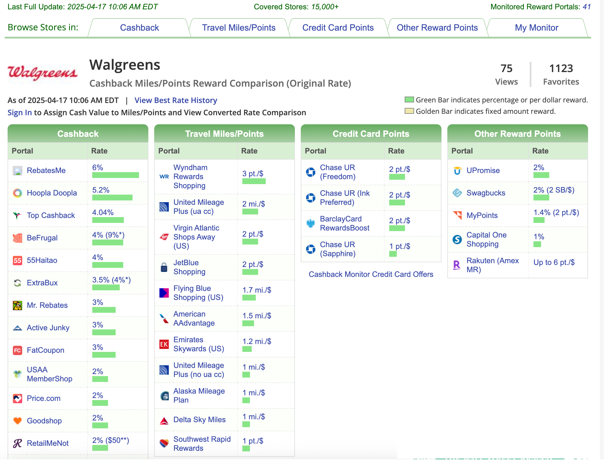 Using a shopping portal aggregator like Cashback Monitor saves you the trouble of comparing bonus rewards rates on your own so you can maximize earnings on purchases you’re already making.