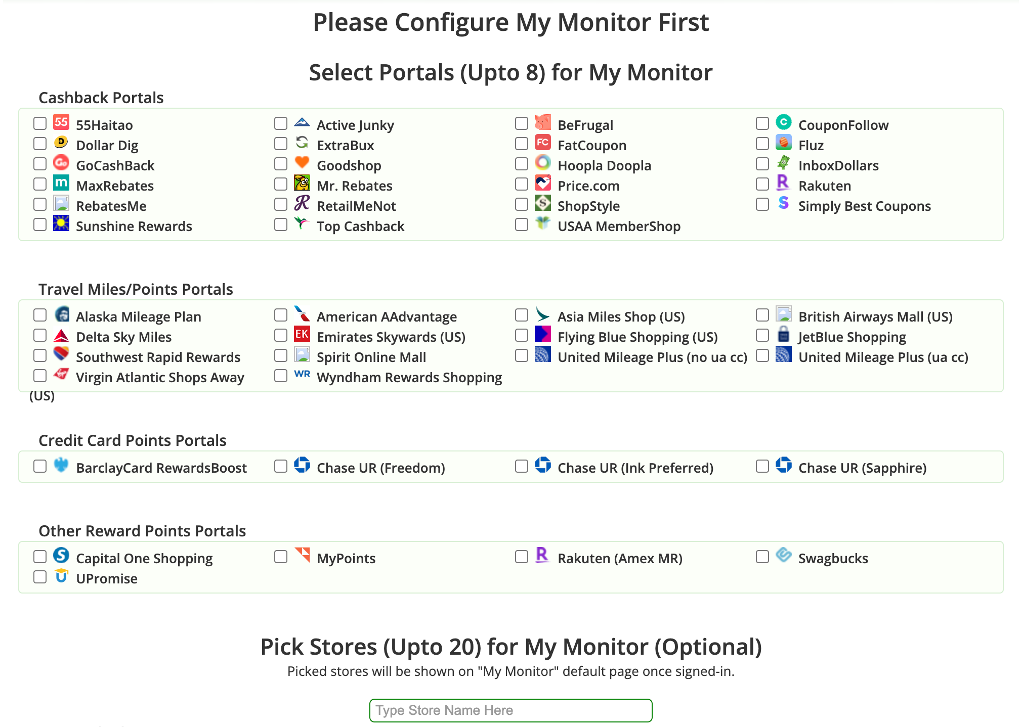 - You can customize the Cashback Monitor site to show your preferred shopping portals and other features, but you need to sign up for an account.
