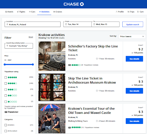 At this rate, you could spend well over a week in this boutique hotel for less than 100,000 points. That would even leave you with enough leftover Chase points to pay for a skip-the-line ticket to Oskar Schindler’s Factory or even a guided walking tour of the city.