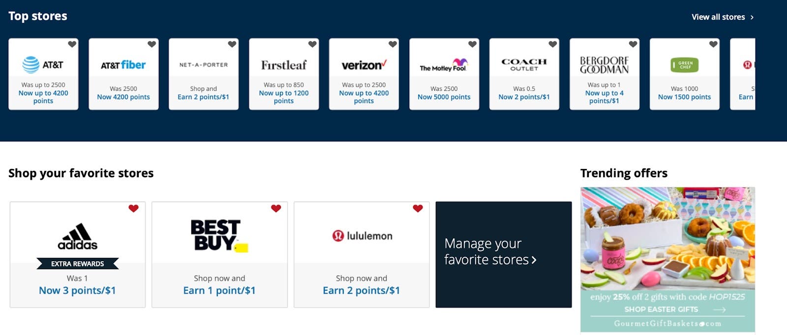 - Browse for a retailer. You can use a search box in the upper right corner to find specific retailers, browse the featured offers under “Top stores” or click “View all stores” for a list of all the current merchants. You can also take a look at trending offers and offers from stores you’ve favorited.