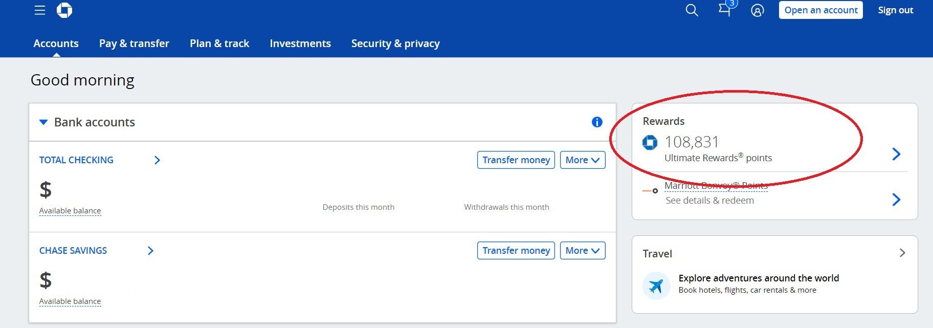Once you log in to your account, you only need to click on the side of the page where your rewards points are displayed to access the Chase Ultimate Rewards portal.