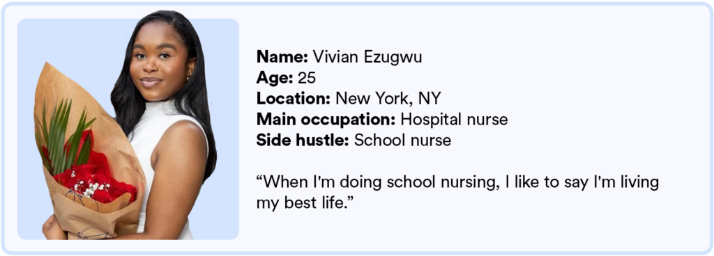 Manhattan-based nurse Vivian Ezugwu has lived in New York City her whole life, and is well-aware that living in the Big Apple doesn’t come cheaply – which is one of the reasons she’s taking on extra shifts as a school nurse in addition to her regular night shifts at the hospital.