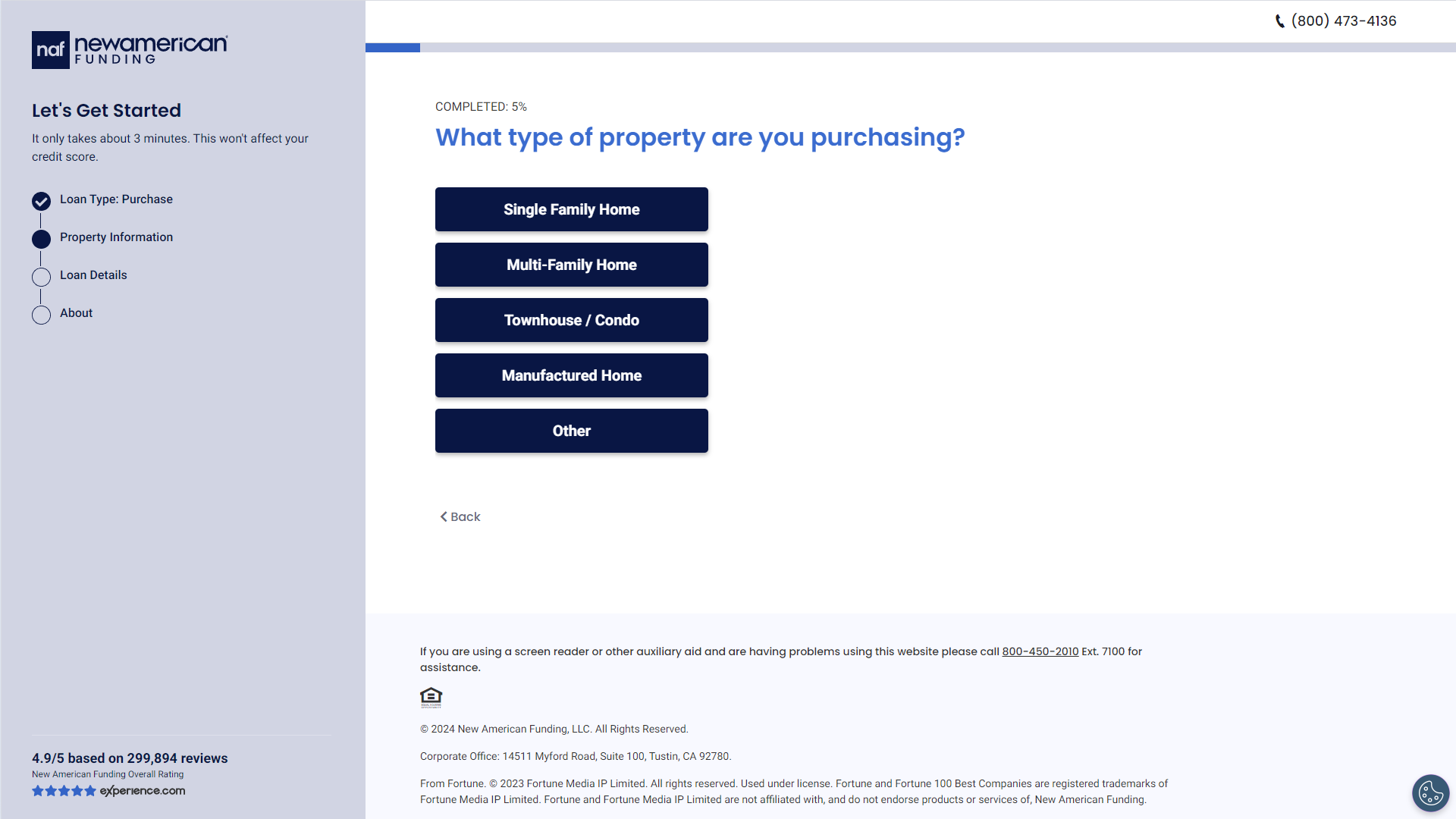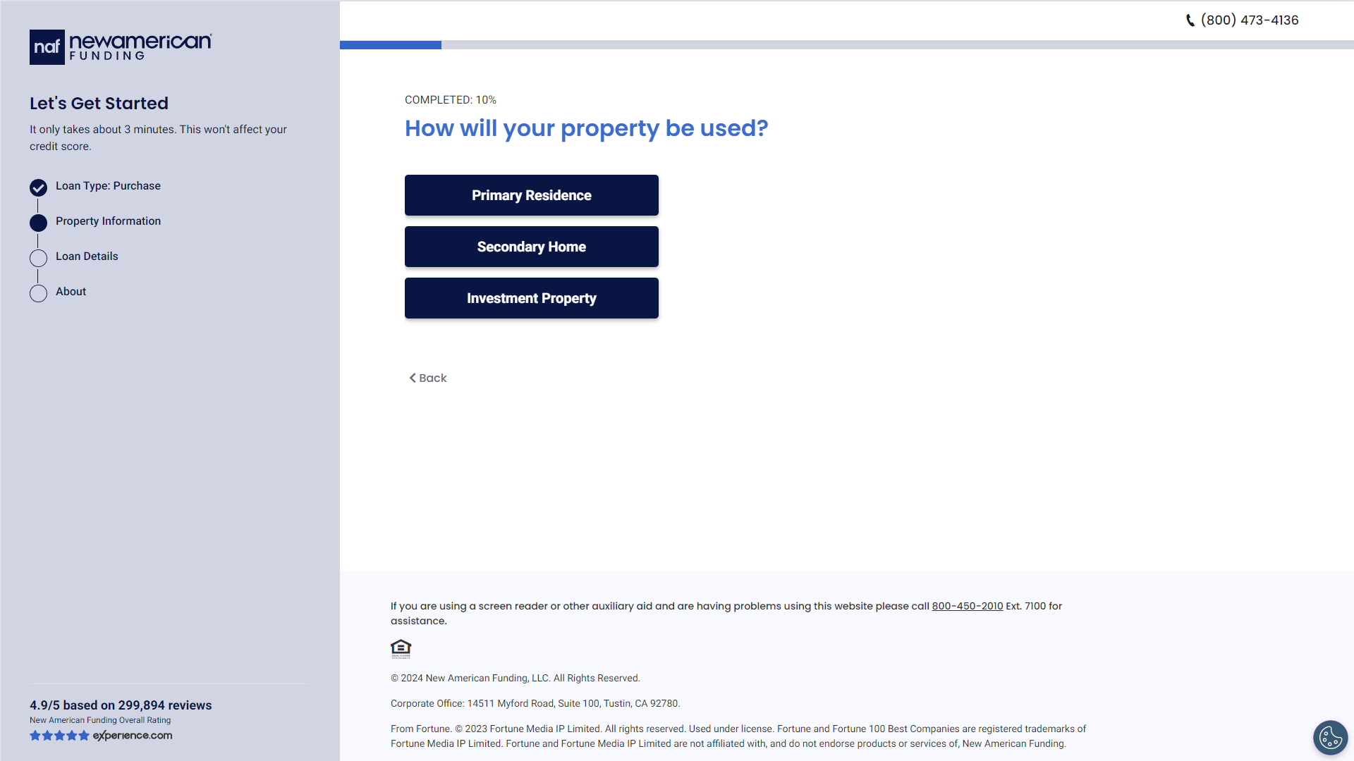 Images courtesy of New American Funding as of 4/3/2024. Note: Depending on method of contact, your individual credit profile and other circumstances, your experience might differ.