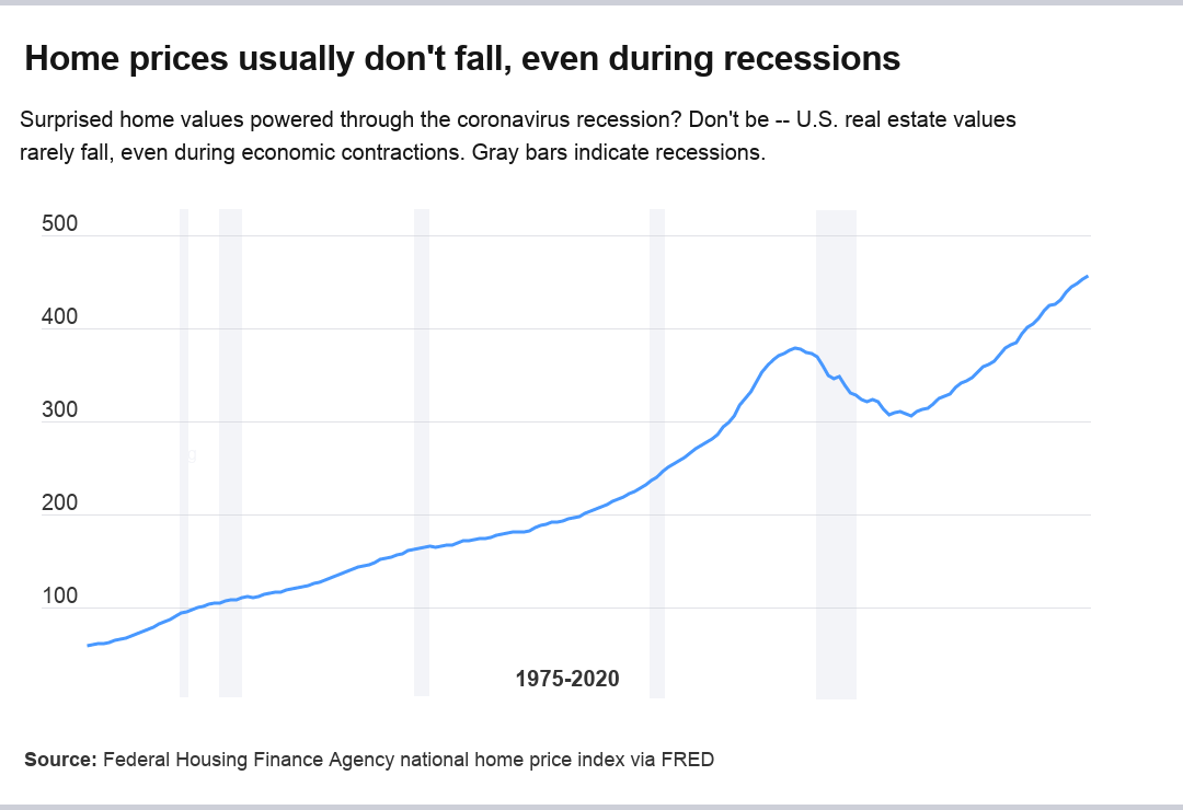 When the American economy plunged into recession this year, many homeowners braced for a repeat of the Great Recession. Such fears were logical. After all, the last time the U.S. economy shrank, home prices plummeted.